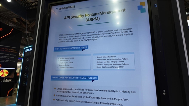 Menanggapi masalah umum pada API (Application Programming Interface) dalam digitalisasi perusahaan seperti "aset tidak jelas, deteksi kerentanan sulit, dan pelacakan kebocoran sulit", T-INNOWARE mempresentasikan solusi ASPM di lokasi, yang menyediakan solusi satu atap yang mematuhi standar kepatuhan global seperti GDPR dan UU Keamanan Data.